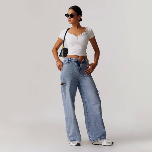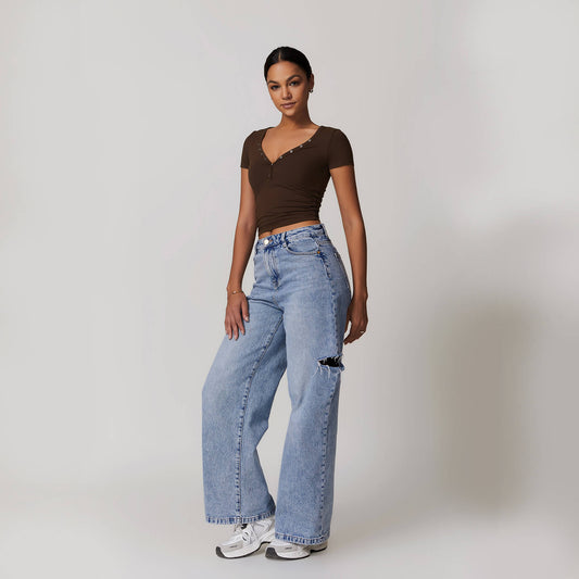 Button V-neck Crop Top